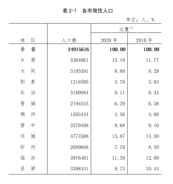 山西省第七次全国人口普查公报[1](第二号)